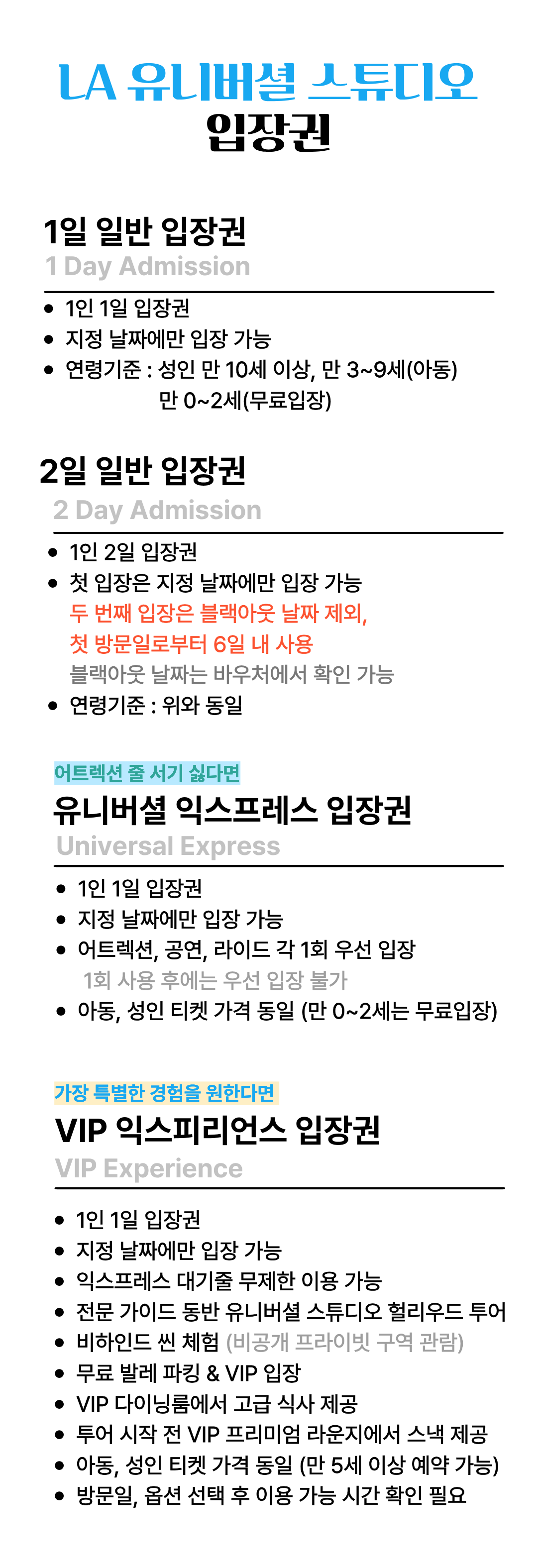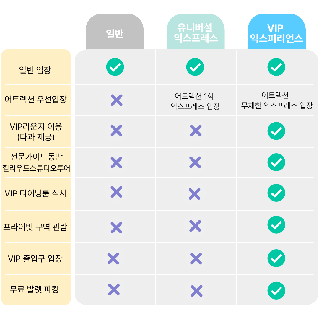 * 포함, 불포함 사항은 각 입장권 별 아래 내용을 확인해 주시기 바랍니다.