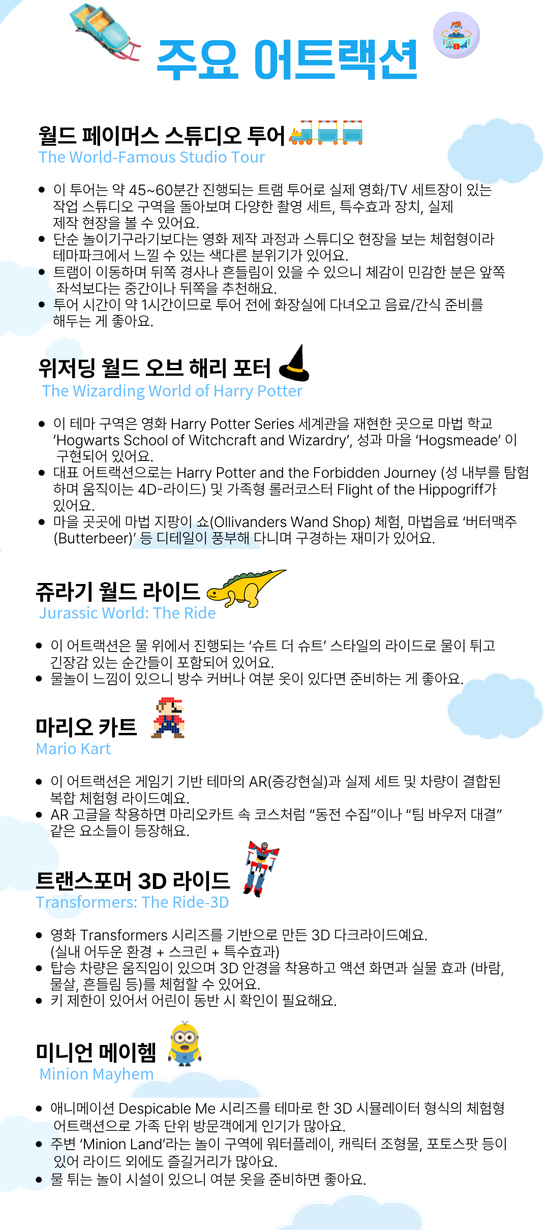 • 일부 어트랙션은 안전상의 이유로 신장 및 체중 제한이 적용될 수 있습니다.