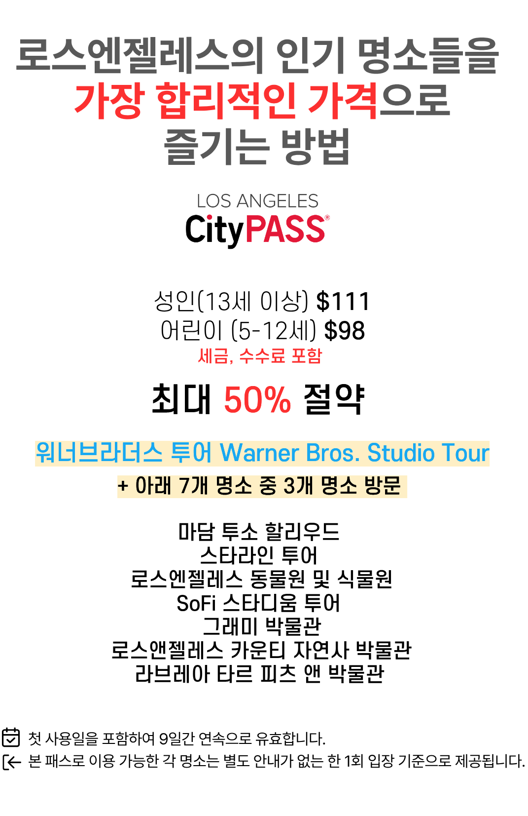 유니버셜 스튜디오 할리우드·워너 브라더스 스튜디오 투어 등 LA 대표 명소를 합리적으로 즐기는 시티패스