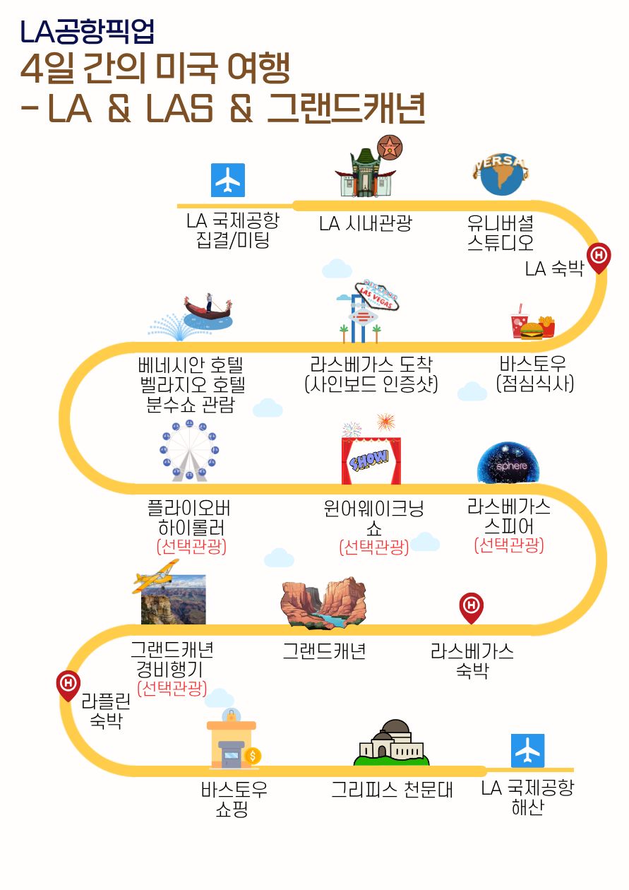 로스앤젤레스의 핫한 도시 감성, 라스베가스의 화려한 밤, 그리고 그랜드 캐년의 압도적 절경까지 담은 3박 4일 미서부 핵심 여행