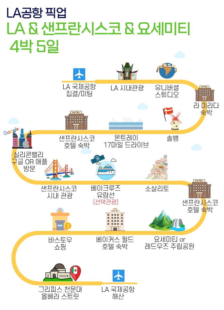 로스앤젤레스의 핫한 도시 감성부터 샌프란시스코의 낭만, 그리고 요세미티 국립공원의 대자연까지 한 번에 즐기는 4박 5일 완벽 미서부 여행