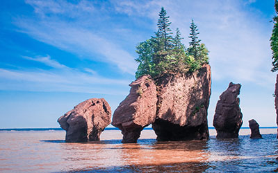 펀디 트레일은 도보 또는 자전거 여행으로 즐기기에 적합한 코스입니다. 세계에서 가장 높은 조수간만의 차를 자랑하는 펀디만에 위치해 있으며 꽃병 모양의 독특한 암석인 플라워팟 록스(Flowerpot Rocks)로 잘 알려져 있습니다. 썰물 시에는 해변을 따라 걸으며 장엄한 자연 경관을 가까이에서 감상하실 수 있습니다.
